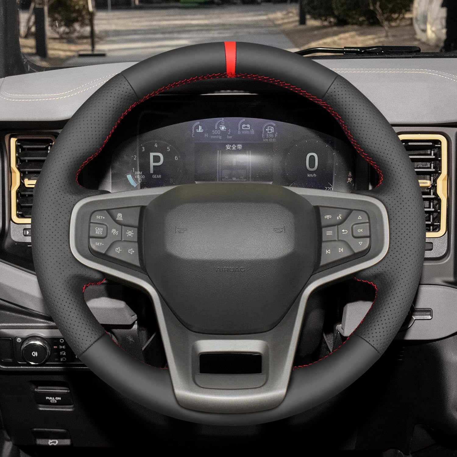 Loncky® Custom Hand Stitched Car OEM Leather Steering Wheel Cover for Ford Bronco 2021 2022 2023 2024 Interior Accessories
